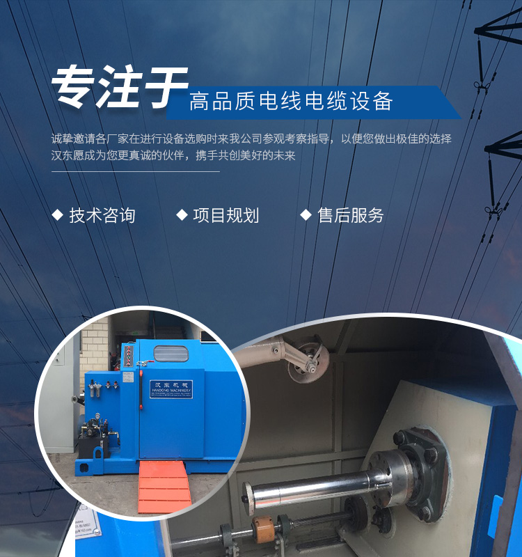 常州漢東機械始創(chuàng)于2006年,是集電線電纜機械設(shè)計、開發(fā)、制造、安裝、調(diào)試為一體化的高科技企業(yè)。本公司自開業(yè)以來,積極引進日本,歐美等國外電線電纜設(shè)備之先進技術(shù),先后成功推出了達到行業(yè)先進水平的電線電纜設(shè)備,主要產(chǎn)品有擠出、繞包、束線、成纜等電線電纜固定設(shè)備。在提供系統(tǒng)設(shè)備的同時,還向客戶提供售前技術(shù)咨詢、項目規(guī)劃、以及售后服務(wù)。我公司本著“以人為本、科技先導、用戶為上”的宗旨,為客戶提供牢靠的產(chǎn)品與省心的服務(wù)。漢東愿成為您更真誠的伙伴,攜手共創(chuàng)美好的未來!